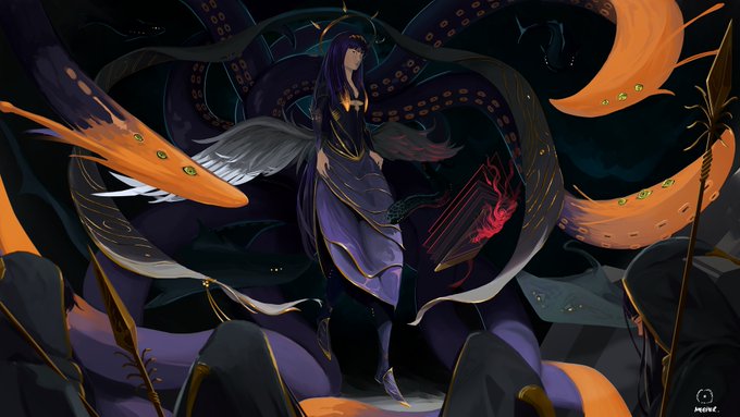 Working on the linework for Kiara's splash art tonight at 4pm JST/6pm AEST twitch.tv/meeper_nz Feel free to come say hi! Gonna have to find a new lofi stream for BGM :( #ArtsOfAshes