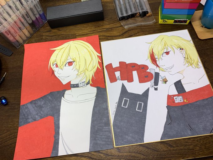 0 3 前の誕生日絵も完成してなかったので、この際一緒に🐈⬛ (机思いっきり作業してたままでごめんなさい) #96猫絵 23/04/11 23:50