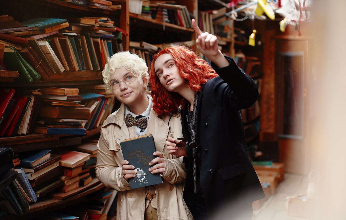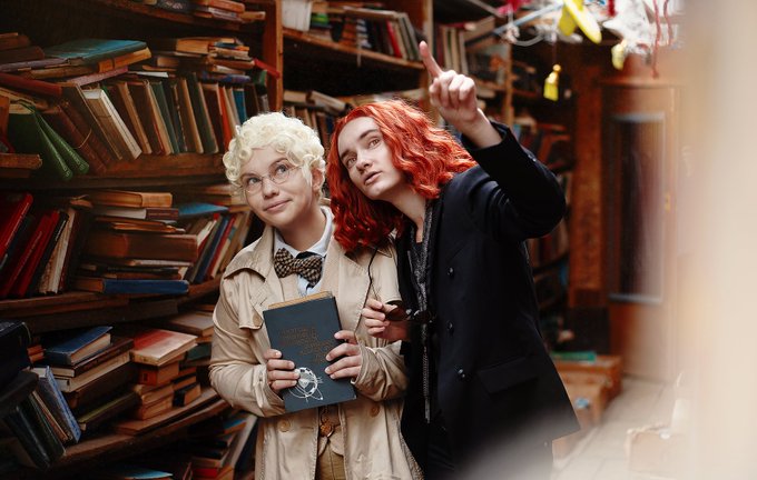 Happy 30th birthday #GoodOmens !😎🔥 Let me tempt you to buy One More Book~ Aziraphale by @Marian_Cosplay Crowley by @Meffisto29 @GoodOmensPrime #GoodOmens30 #cosplay #goodomenscosplay #ineffablehusbands #Crowley #Aziraphale