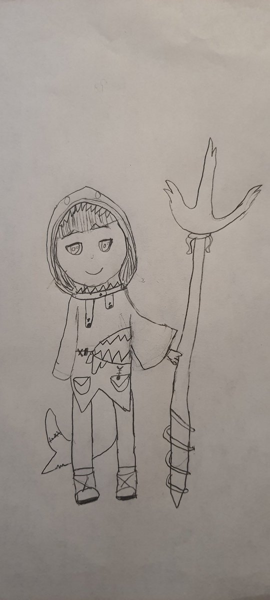 My little sister, who turned 9 yesterday, drew Gura and Smol Calli. She wanted me to share her drawings with everyone. She got into hololive a while back and she watches streams with me sometimes. Gura is her favorite and she likes Calli a lot too. #gurart #callillust