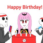 I drew a cute little picture of Calli celebrating her birthday with the Deadbeats. I'm the one on the left. (My drawing is on the top right of the 3rd pic) #calli3DBD #callillust twitter.com/Moris_Realm/โฆ