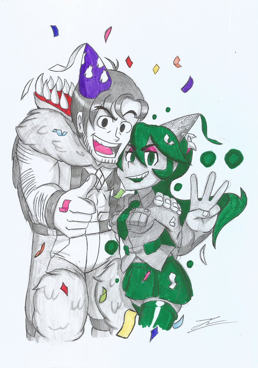 Today's Beowulf's birthday, WOOOOOOOOO!!! And the day after just so happends to be the day that Fukua was announced as a new playable character in Skullgirls, so I thought:"Why not draw them both?" Well, "Happy Fools Day" you two! #Skullgirls #Skullgirlsfanart