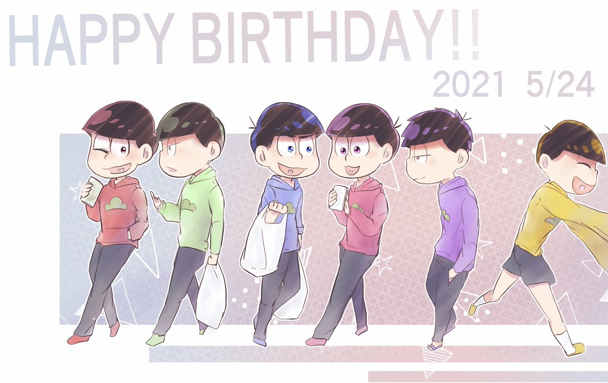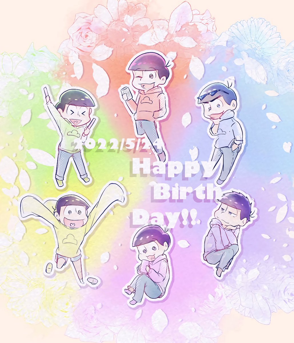 94 309 #松野家6つ子生誕祭2022 #おそ松さん生誕祭 今年もお誕生日おめでとう❤💙💚💜💛💗大好きだ〜〜!!!!!!!! 22/05/24 00:00