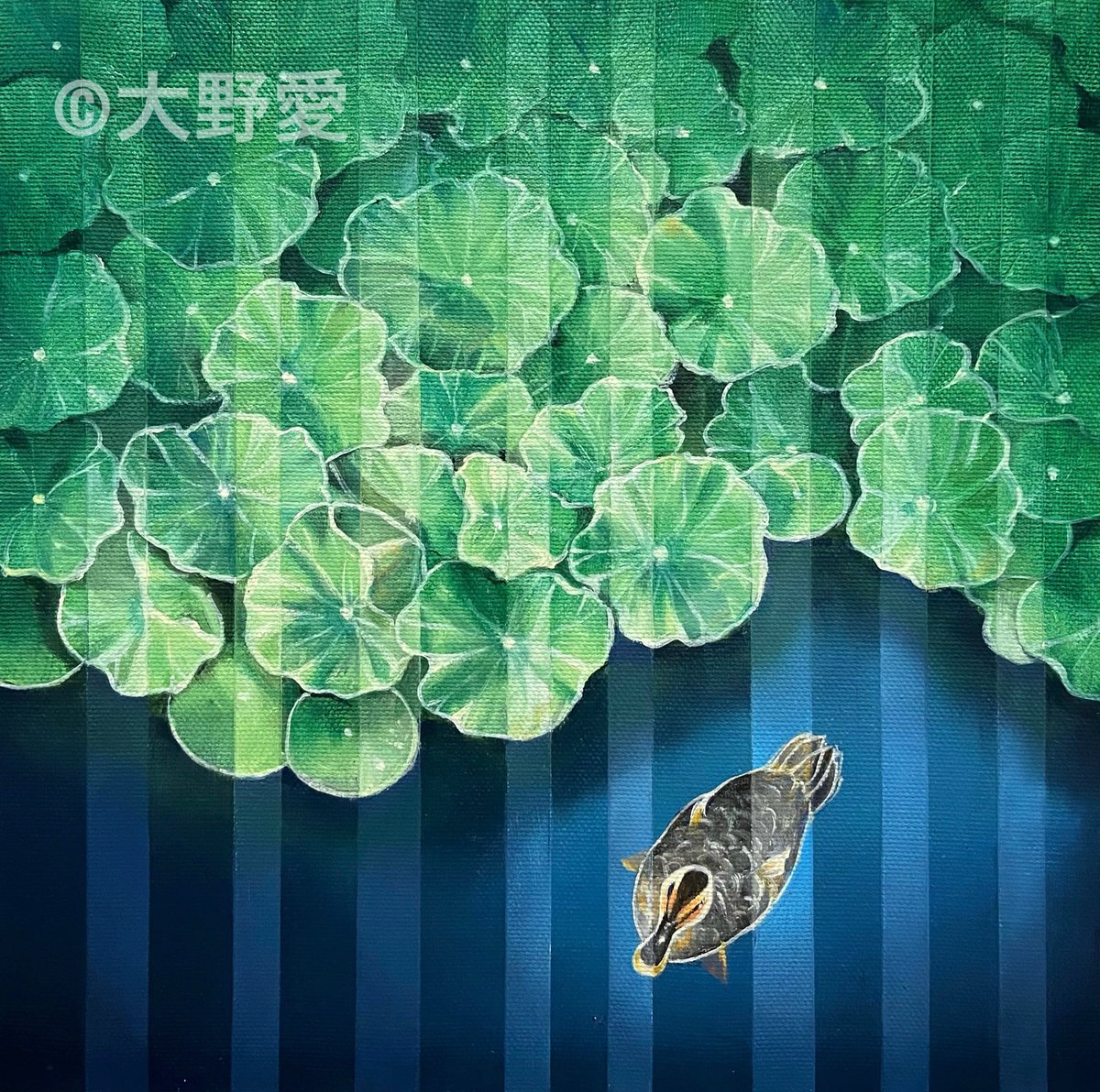油彩🦆 "Lotus Pond" SSM (22.7×22.7cm) 静寂な蓮池に鴨🦆 鎌倉 鶴岡八幡宮の蓮池をモデルにしました。 #art #oilpainting #illustration #油絵 #絵 #アート #大野愛 #鎌倉