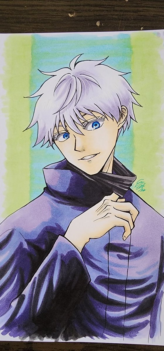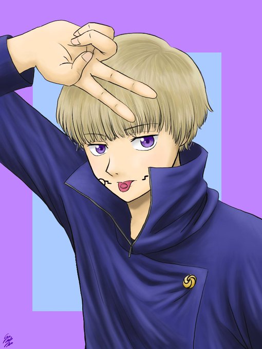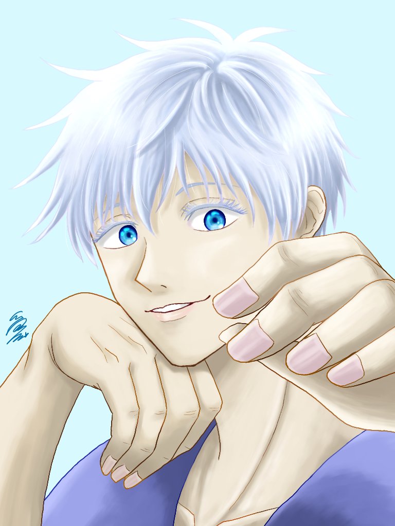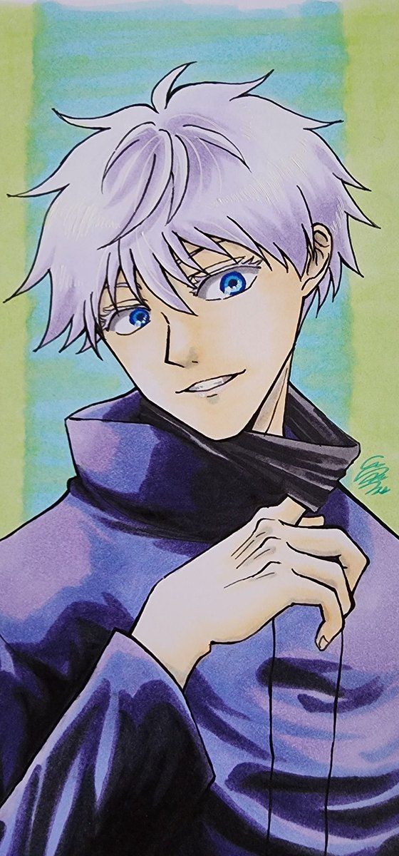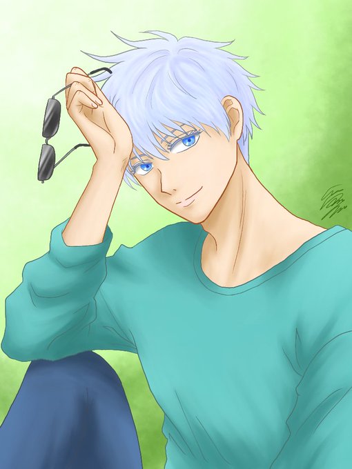 さわやか五条先生(ᐢ´꒳`ᐢ) 服の色もっと薄くすればよかったw ちゃんと唇ぷるぷるにしたよ(*´艸`)プ #呪術廻戦 #呪術廻戦ファンアート #五条悟 #イラスト好きさんと繋がりたい