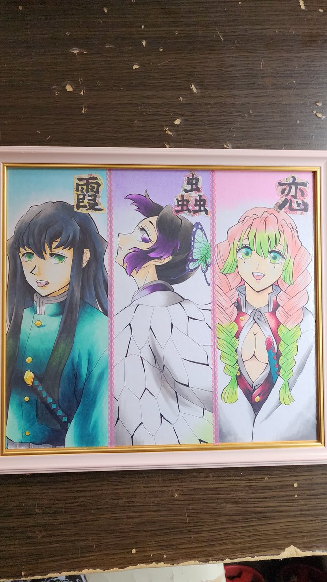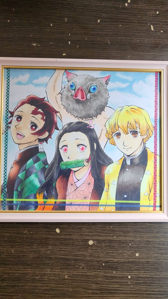 無事に完成いたしましたm(_ _)m 応援ありがとうございました(*´ω`*) 和柄折り紙に書いた字を切り抜いて貼って マステもペタペタしました(*^^*) #鬼滅の刃 #イラスト好きさんと繋がりたい #アナログイラスト