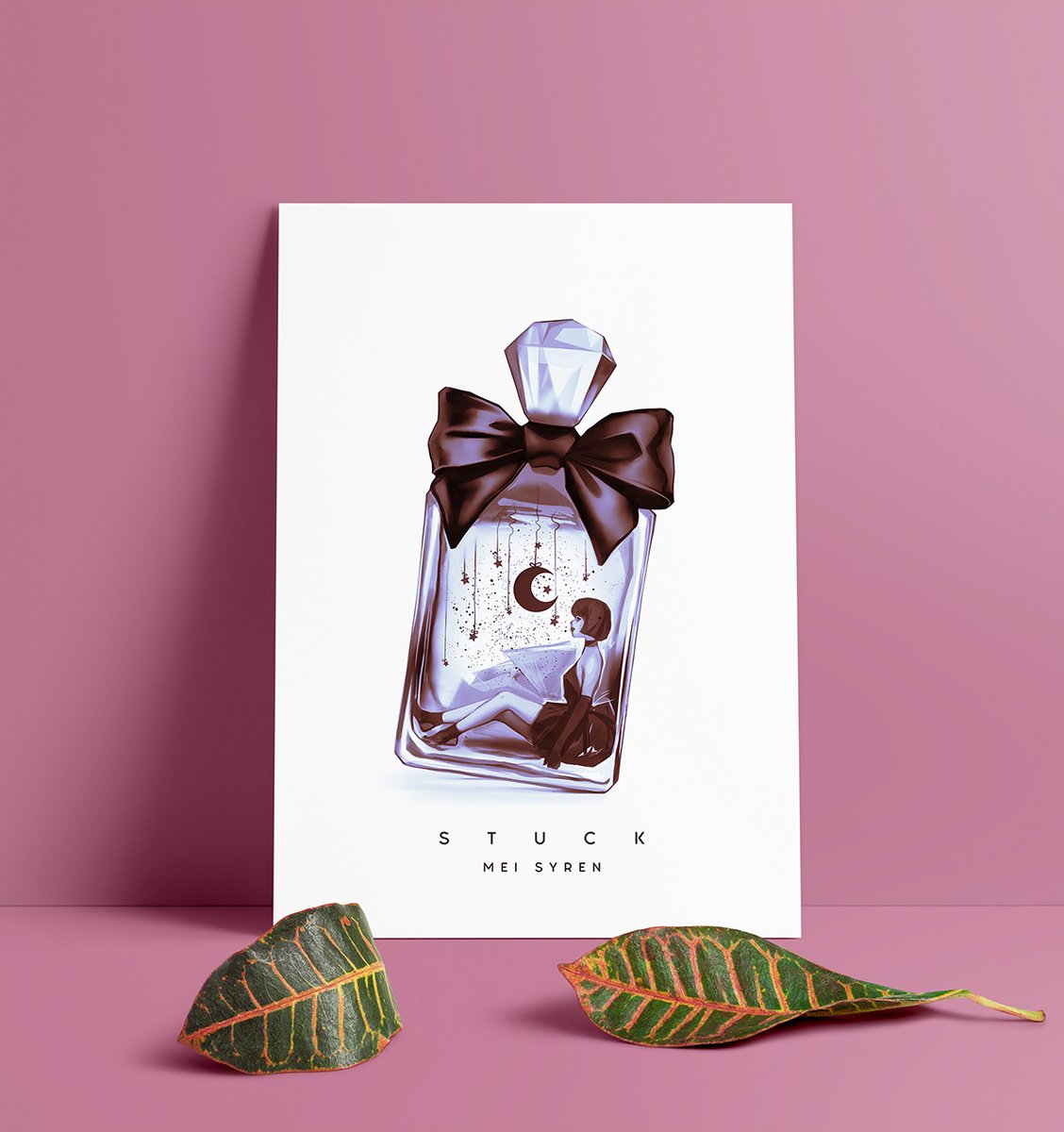 Stuck, día 12 de Inktober. Me he acordado de cuando ilustraba para la revista Èvoque todo tipo de botecitos y frasquitos. #inktober #inktober2021 #InktoberOP #drawtober #digitalart @Ayuda_Artistas @ApoyaAlArtista @ConoceArtistas @dibujando @TheArtistHelp @TheArtBond #perfume