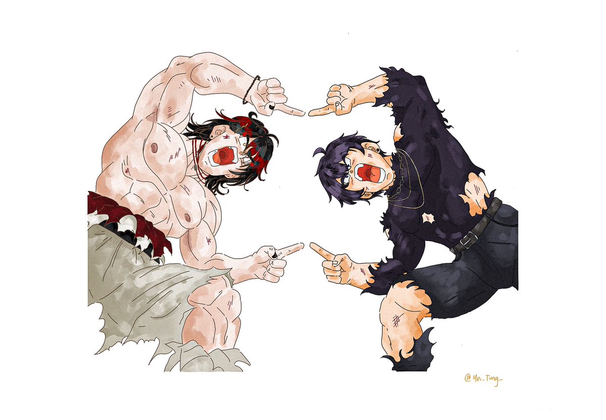 / CANT WAIT TO SEE THEIR NEXT COLLAB HOLY \(//∇//)\ Although I must be younger than they are, both of em are just like my adorable sons🥹🥵 Ref Scene: DBZ / #Akurylic #ArtoftheRogue #voxto #illustration #doodle #fanart #vtuber