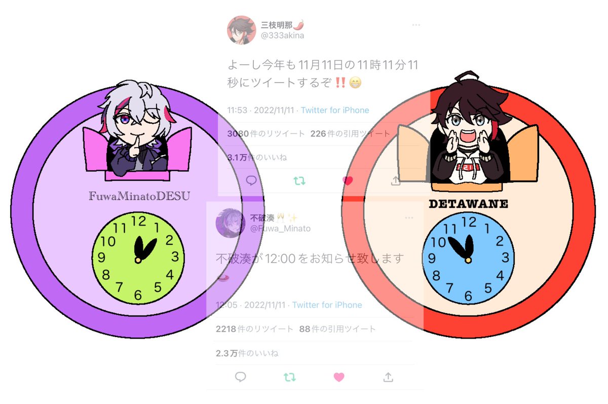 3 41 #さ絵ぐさ #絵スコート #NIJIArt 時差ありまくりのふわぐさ時計 22/11/11 22:29