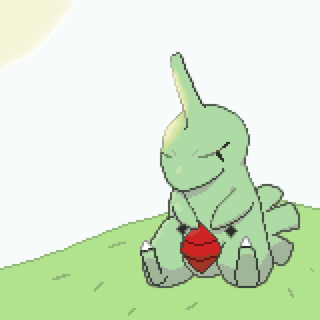 出来たー!! お題「ヨーギラス」より「陽だまりに眠るヨーギラス」です!! グラデ頑張ったりジャギ取り頑張ったり…でも良い感じのドット打てたんじゃないかな!? お題くれたはやぶささんありがとー!! #ヨーギラス #ドット絵 #pixelstudio