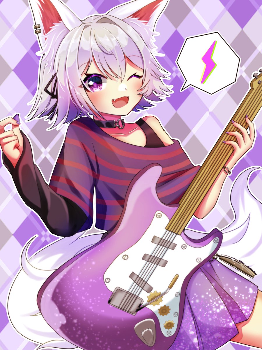 #アルバ絵 カッコ可愛いギタリスト風アルバさん⚡️ 右は背景無しデス