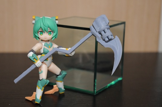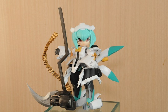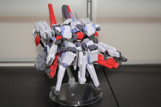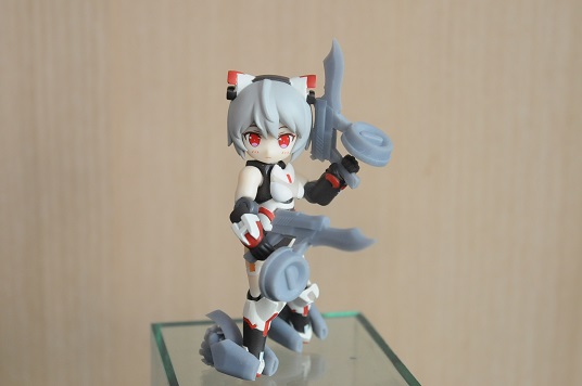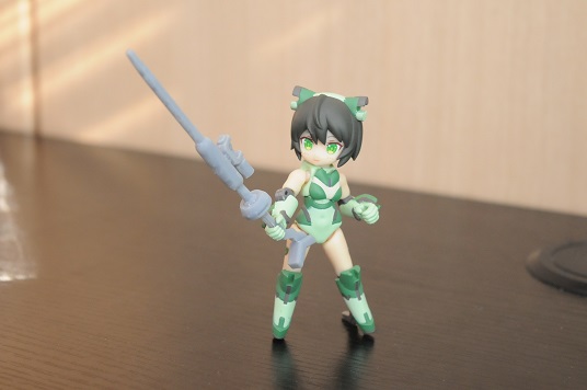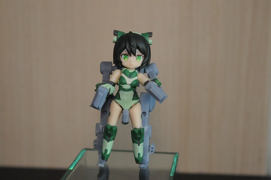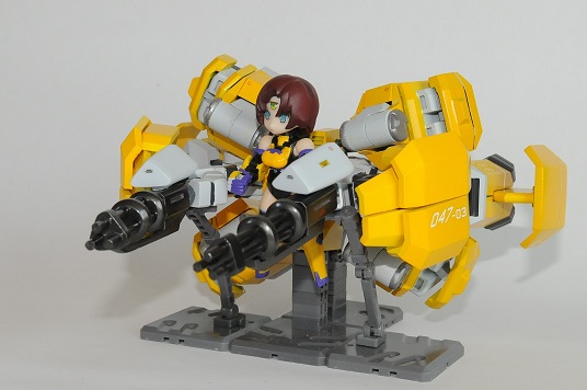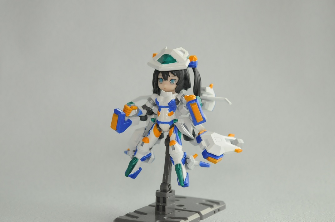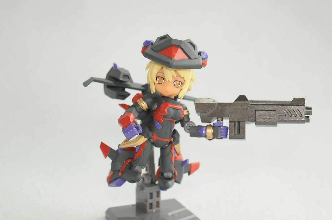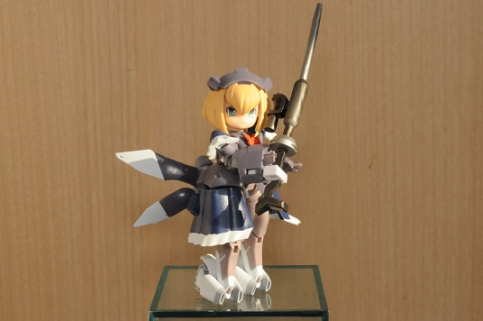 【コンテスト参加】 【応募条件に同意します】 【戦闘】 #デスクトップアーミー シルフィー弐型(セカンド)・ウーナ シルフィー後継機計画の一案で、頭や体はそのままで手足と武装の見直しがされている ウーナは1の意味で、特に装備テストをかねて重武装である