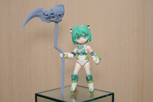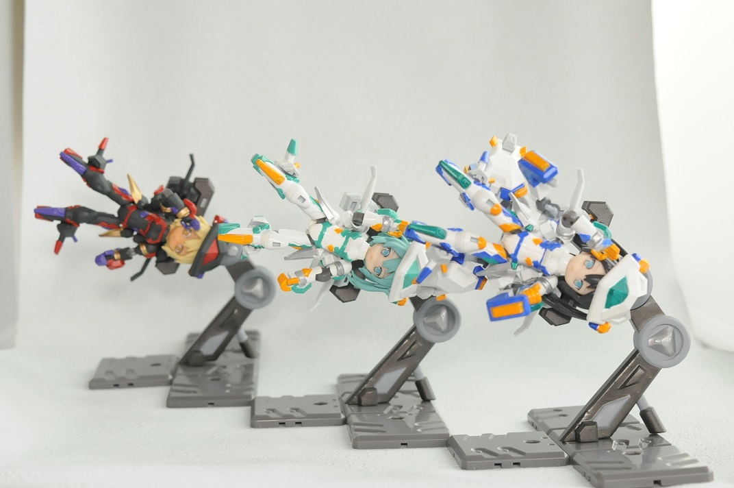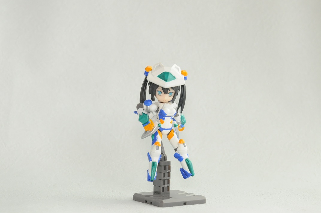 【コンテスト参加】 【応募条件に同意します】 【戦闘】 #デスクトップアーミー シルフィー弐型(セカンド)・トリア シルフィー後継機計画の一案で、頭や体はそのままで手足と武装の見直しがされている トリアは3の意味で、標準装備の機体で他ブランド用の機体となっている