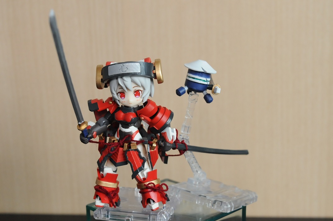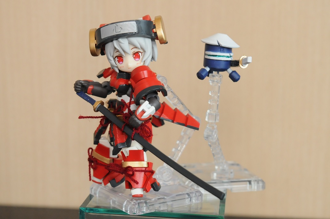 【コンテスト参加】【応募条件に同意します】【戦闘】 #デスクトップアーミー 大鎧を装備した、サムライガールのココロちゃん。 口癖は、「この大太刀に切れぬものなし」 サポートメカの五郎は剣の師匠で、五郎師匠と呼んでいて師匠に傷をつけた敵をさがしている。