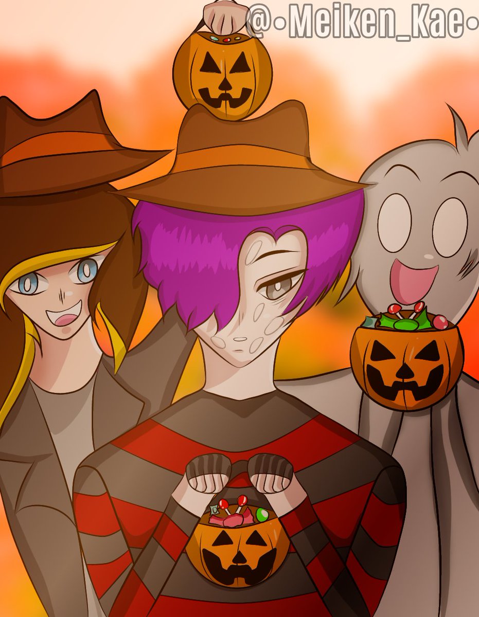 Día 5 banda 🍭🍬Pidiendo dulces 🍬🍭 Tenemos aquí al fasty, a Wea con sus respectivos disfraces y a pafo disfrazado de fantasmita todo bonito <3 #TLACUATOBER #TLACUADUBS #inktober2022