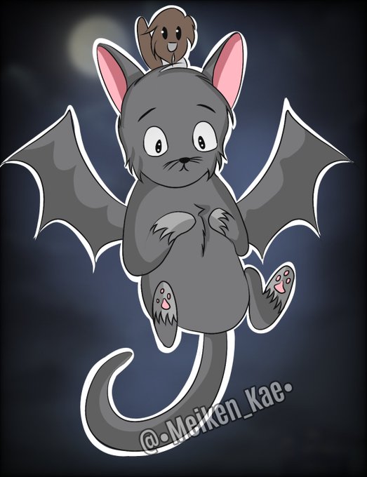 Día 25 (ya falta poco gente :'v) 🤍 Risottto como murciélago 🤍 Vean que bonito y chiquito está <3 como es un murciélago se me ocurrió que estaría volando con pafo montandolo :3 espero les guste ❤️ #TLACUATOBER #Tlacuadubs #inktober2022