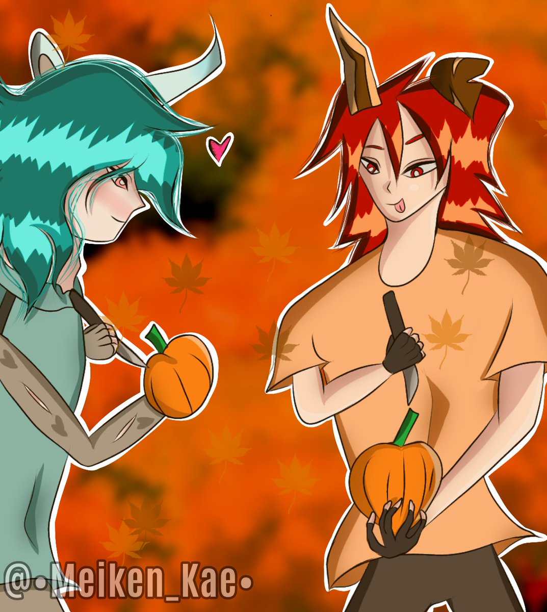 Dia 14 🧡Tallando calabazas🧡 Aquí se me ocurrió meter a una de mis parejas favoritas ✨ @katu_kint y @AzAnuar077 ✨<3 pero versión humanos ya que no sé dibujar furros xd ajsbsbs espero les guste ❤️ #TLACUATOBER #TLACUADUBS #inktober2022