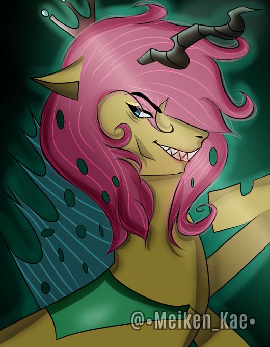 Día 18 ✨ @AmarillitaDaira como changeling de MLP✨ Le cambié namás tantito la paleta de colores pa que se viera más oscuro, y le puse bien poquititita sangre xd espero les guste ❤️ #TLACUADUBS #TLACUATOBER #inktober2022