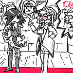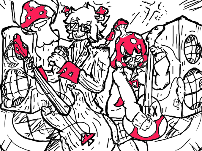 250th Metro-Tastic day (o°o) Day 7 of #inktober2021 : fan ! The Chanteurs-Hell are on tour and decide to swing by Memcula's castle to jam out with the local ghouls. Memcula takes this chance to finally meet her idols ! (she really likes mushrooms.)
