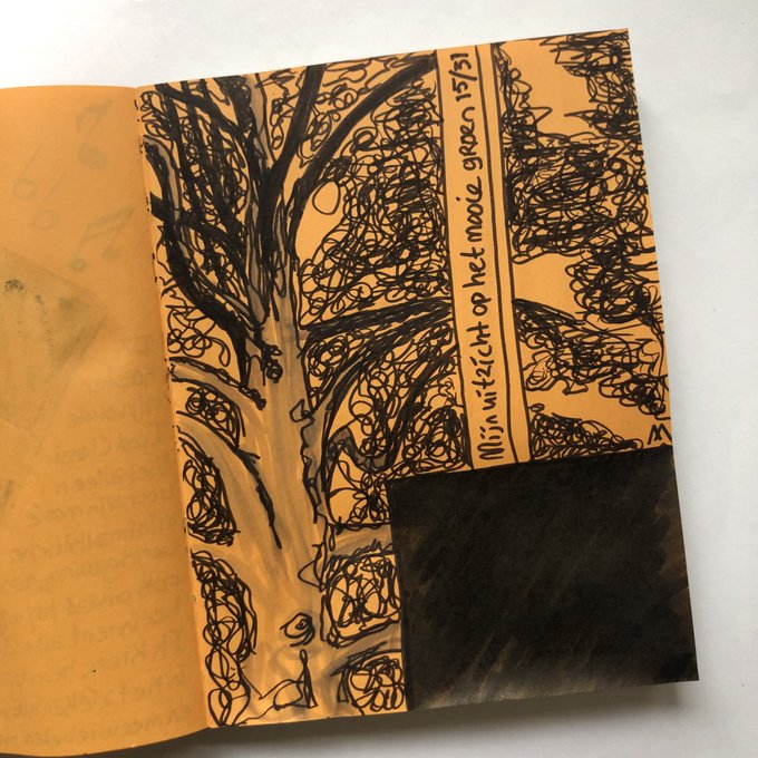 Het uitzicht vanaf mijn werkplek. Vaak komt er een Vlaamse gaai langs of een specht en heel soms een eekhoorn, maar vandaag helaas niet. #Inktober #illustration #inktober2020day15