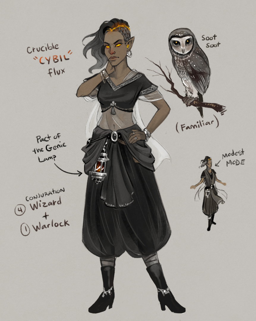 For some reason I stayed up till 2am designing my new wizard's outfit and familiar. When the mood strikes I guess. Love to play her someday. 🥲😂 #dnd #dndcharacter #dndart