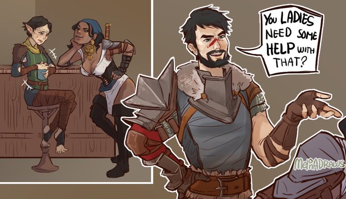 Dragon Age 2 was just Varric and Cassandra playing DnD. Hawke is just Varric's OC okay?? ヽ(´ー`)┌ #DragonAge