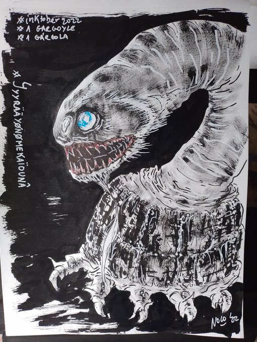 #PrimigeniosCaleteros #inktober #inktober2022 #1GARGOYLE #1GÁRGOLA #YYYRÄÄYØNØMEKAÏOUNÂ