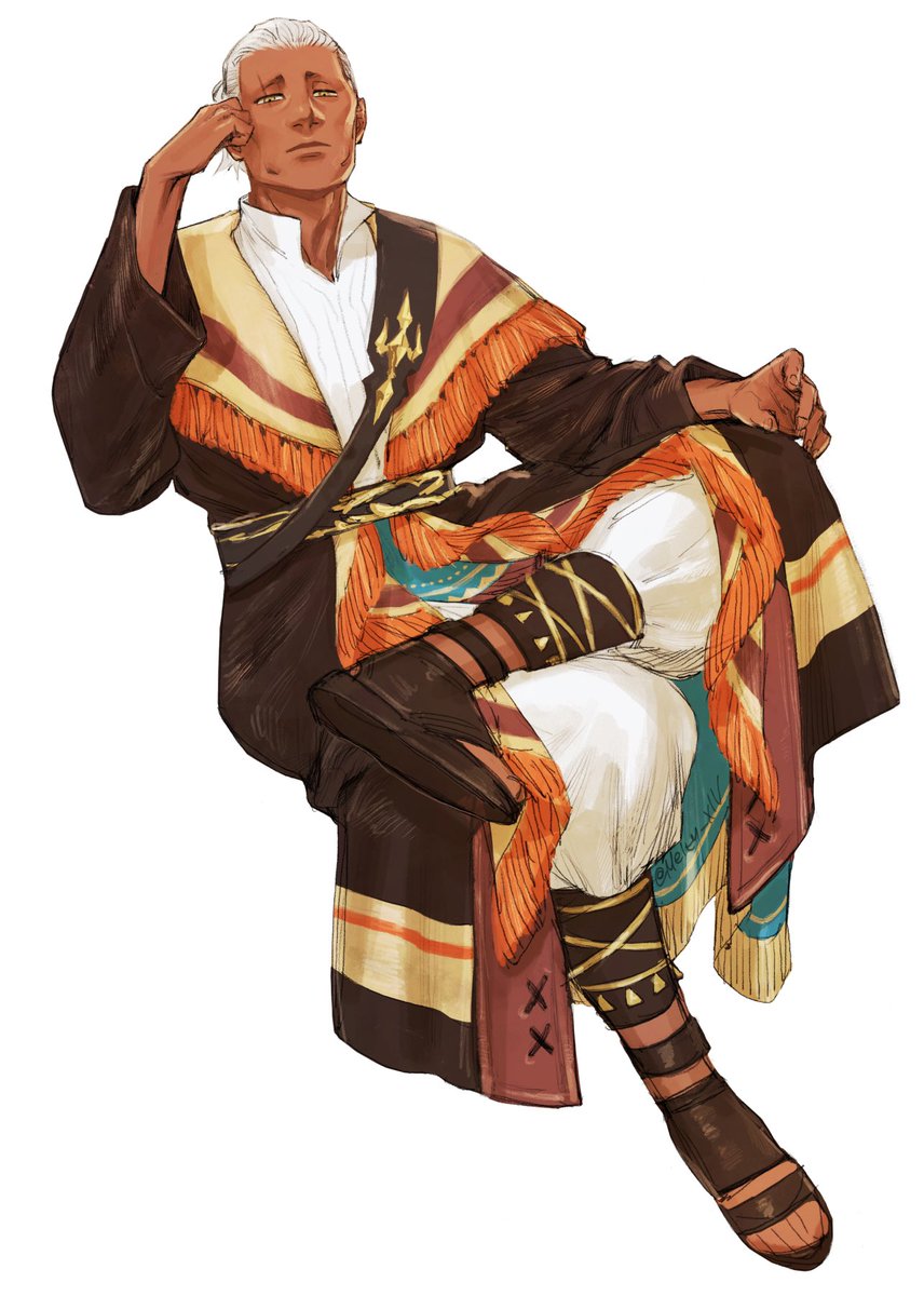 というわけでお披露目🎉 アラミゴ装備本に描かせていただいたのは、アラミガンギャザラーコートのイルベルドです。 誰にしよう?と思った時真っ先に浮かんでしまって、ど~~~しても描きたくなったのでパッションのままに描き切りました。 #AlaMhiganFashion #頭割り5