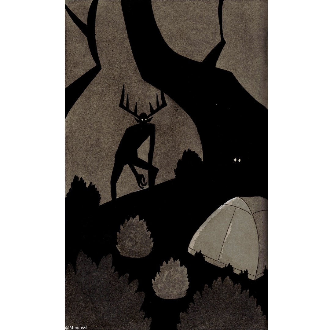 Inktober2022 – 28/31 – CAMPING . Moleskine sketchbook Faber-Castell pitt artist pen fineliner Chinese black ink . #inktober #inktober2022 #inktobercamping #inktober2022camping #inktoberchallenge #horror #creepy #wendigo