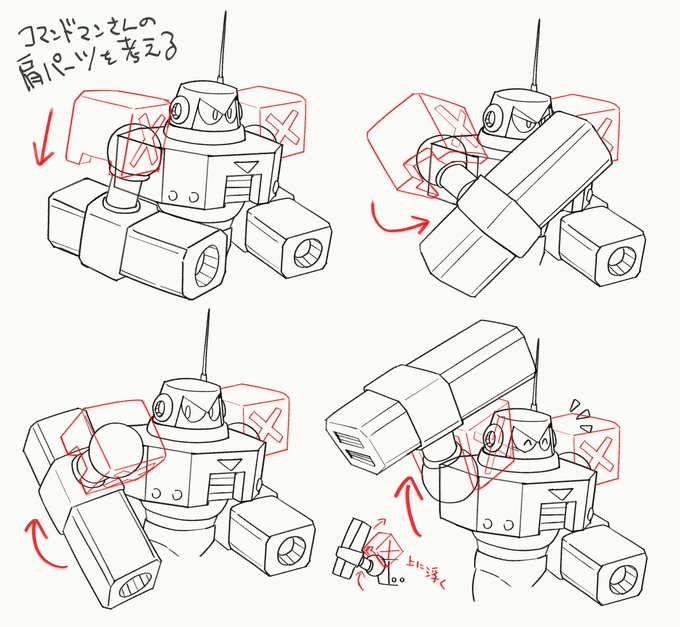 【らくがき】コマンドマンさんの肩パーツの動き方について考える