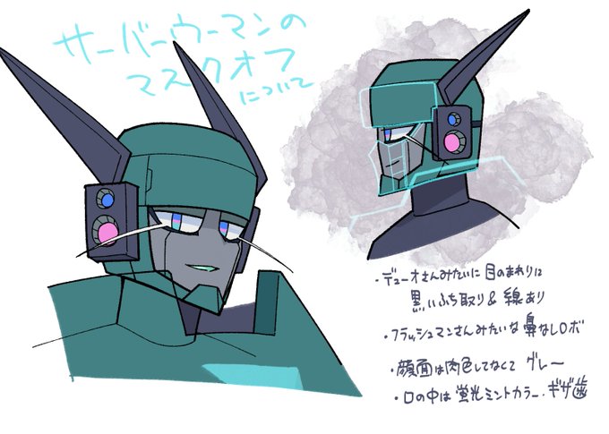 2 6 【オリロボ】このままでは一生描く機会を失し続けるので、勢いに任せて描きました。サーバーウーマンはマスクとバイザーオフするとこんな感じです 23/08/01 00:00