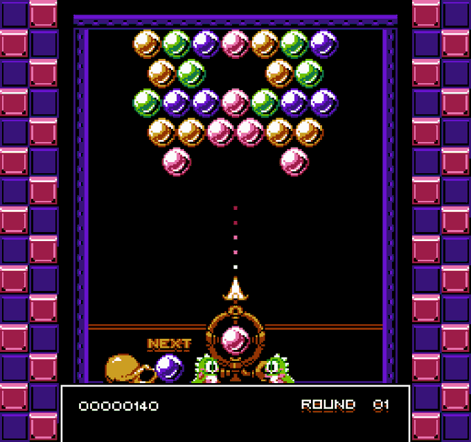 I was bored and wanted to create #nes mockup for some game. So here's my version of how bust-a-move game would look if it was to be ported on NES. Though this would be nightmare to update attribute table because of shifted rows if it was a real game😅. #pixelart