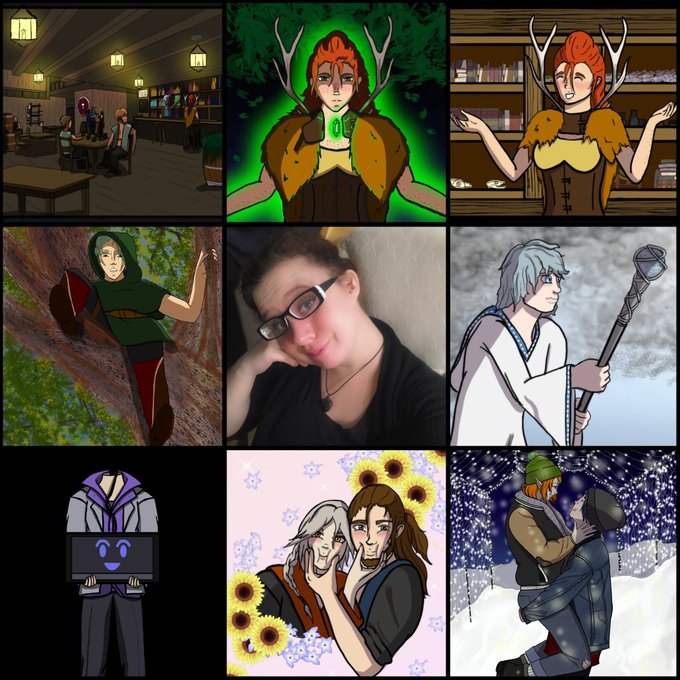 Art vs artist 2021. It has been a fantastic year for me. Top row: Favorite pieces for my comic. Middle row: Favorite illustrations of other characters that appear later. Bottom row: my first comissions and winning DTIYS illustration. #artvsartist2021 #webcomic #tada