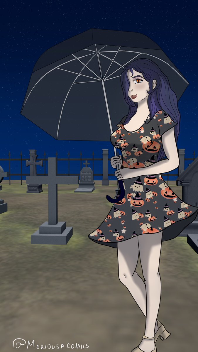 Just realized I never shared this, oops. Not an OC (yet). Just a cute spoopy gal in a cemetery. #spoopyart #halloweenart #DigitalArtist