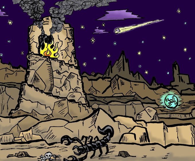 In the Badlands, mages can find one of many mystical, Mana Nodes hidden in nature to gain magic power. The Faren Temple reaches to the sky, it’s rocky steps to be climbed by a devoted acolyte of the wrathful nature god #inktober2022 #inktober #inktoberflame #art @jessekiefer