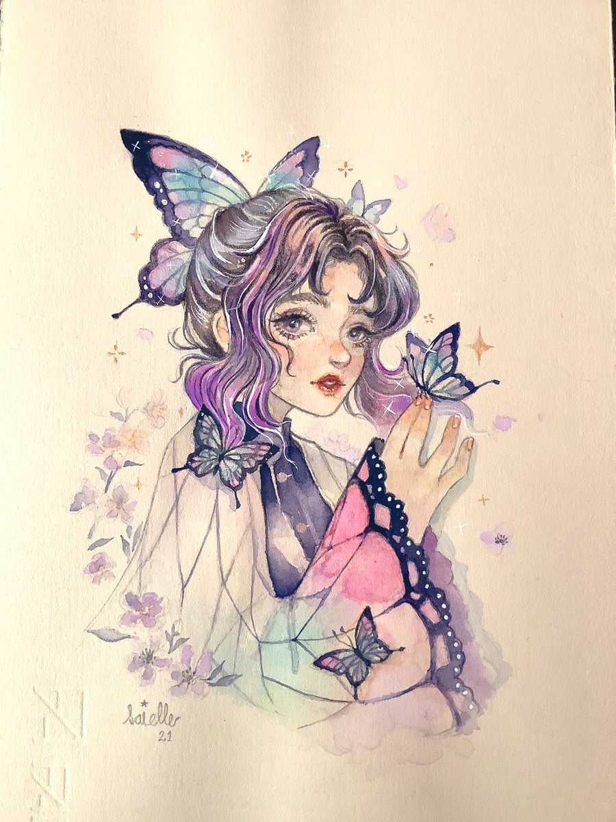 Shinobu Traditional commission: 40 usd #commissionsopen #kimetsunoyaiba #kimetsunoyaibafanart #illustration #VisibleWomen