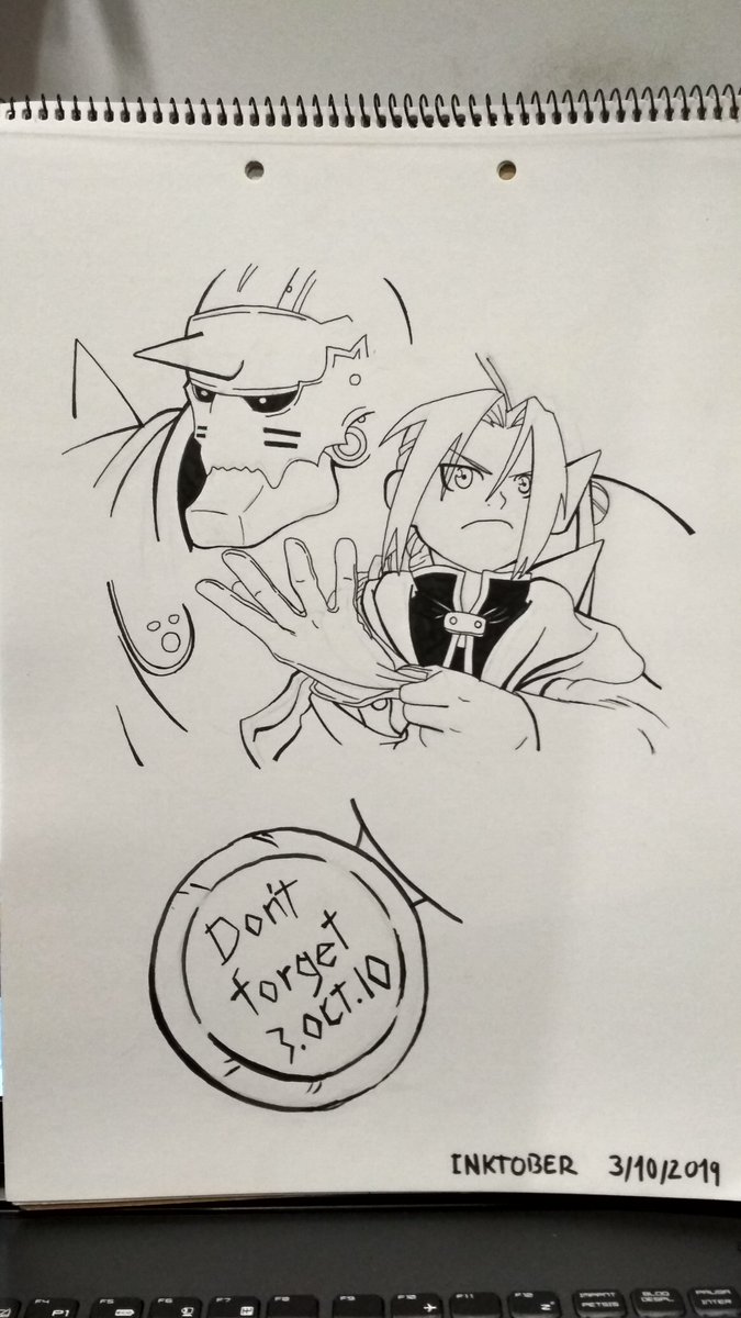 Hola chic@s, mi tercer dibujo del #Inktober2019 lo dedico a #FullmetalAlchemist #FullmetalAlchemistDay 😊 Espero que os guste :3 ¡Anime de diez y recomendadísimo!.