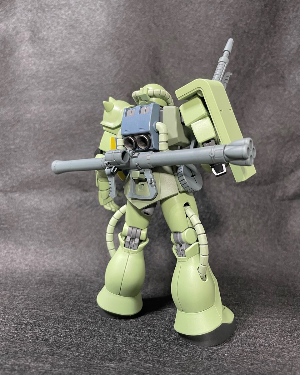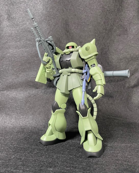 2 12 HG 1/144 ザクII 動力パイプ以外を水性ホビーカラーで塗装しました。 ザクのマニュピレーターは好みの単色に変更、U.C.0153あたりのイメージです。 #ガンプラ 22/06/16 21:30