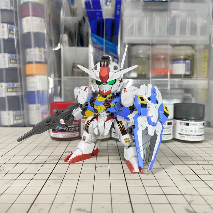 SDEXガンダムエアリアルをスミ入れ+部分塗装で仕上げました。本体はサクッと組めて造形も良いのでお値段以上に楽しめました。 #ガンプラ #G_Witch