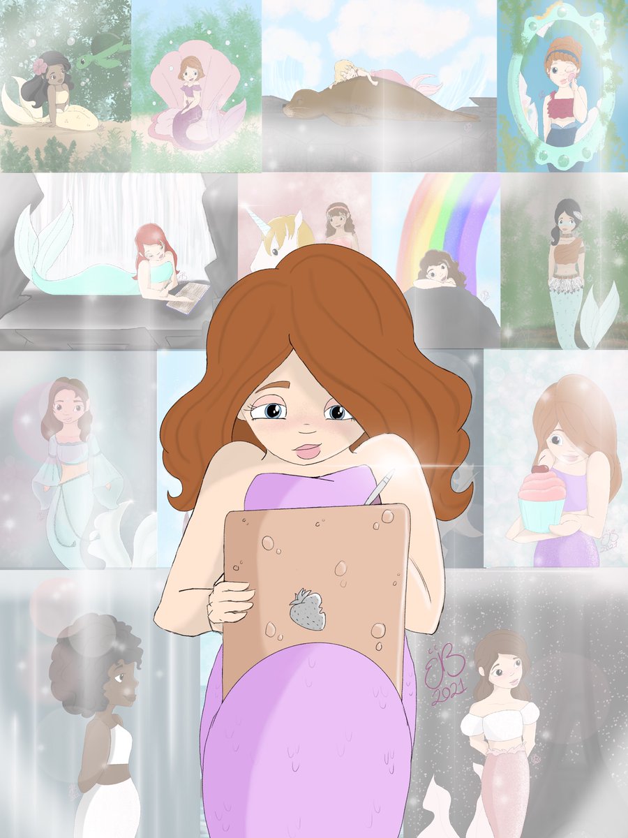 A couple more of MerMay art I did this last month! #mermay #art #digitalart #ipadpro2021 #mermaids #bubbles #unicorn #Fairy #book #selfcare #mermaychallenge #challengecomplete