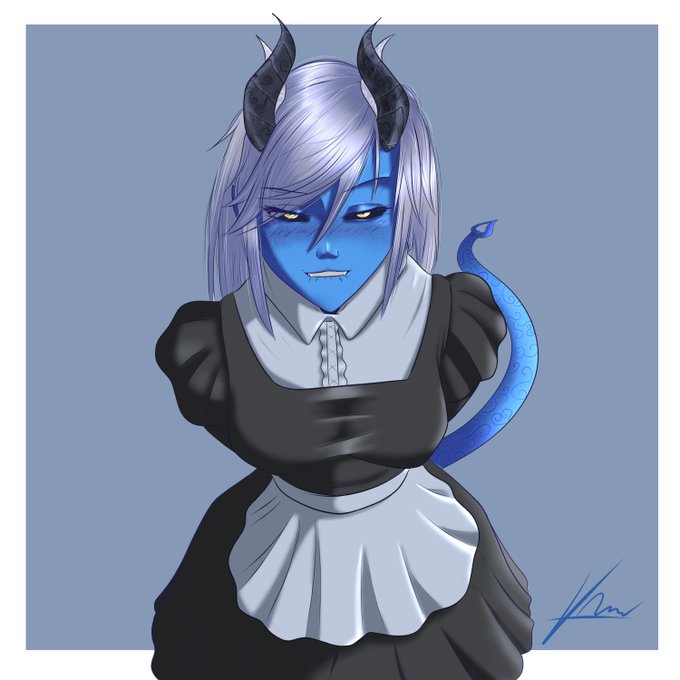 Danniela Balaurea, my tiefling. A person looking for a stable job and for things in life ended up in an adventurer's guild. She wears maid clothes because that's the only thing she has. #dnd #dnd5e #fantasyart #dndcharacter #dndart #tiefling