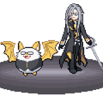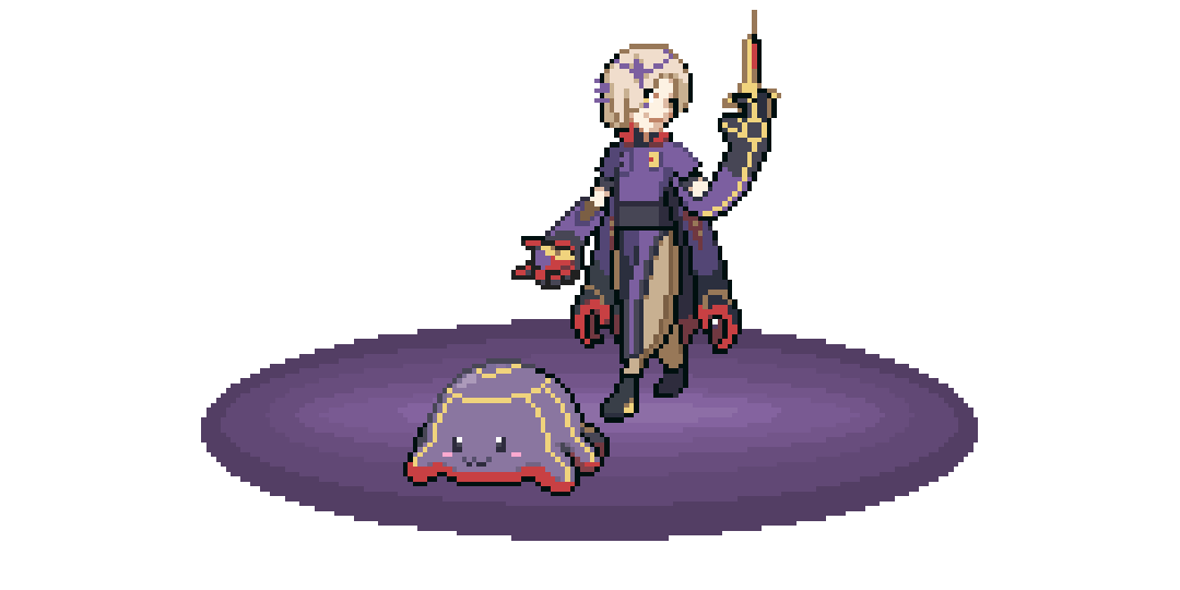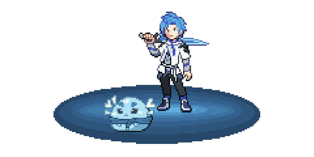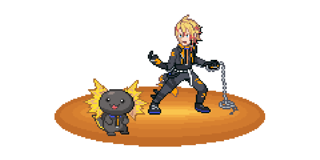 HQ and fan reps as trainer and Pokemon sprites! I believe the vestie design I used is ieka95's? It's been really fun revisiting pixel art. Will do VG next! #WorkofAlt #MagniOpus #ArtXel #VespArt
