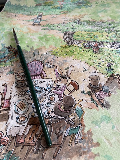 まーだ #北九州市 がトレンドに入ってるのか。皆さんの方でも入ってるのか知らないが。 門司港の喫茶店 #ティールームセンガク で個展を開催中です。 #不思議の国のアリス をテーマにした水彩画。火曜日までです。ぜひぜひ。 #イラスト #アナログ絵