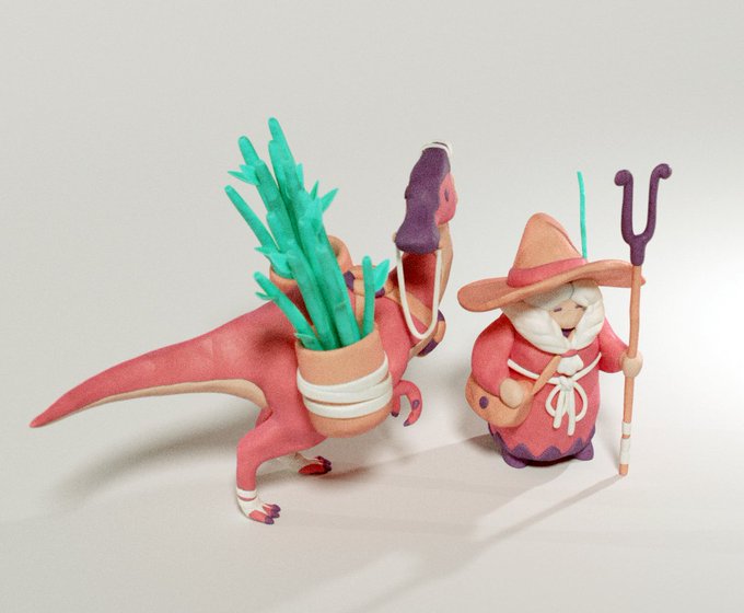Old lady farmer and her dino. Done in #Blender3d . If something isn't cute fake clay, what's the point?
