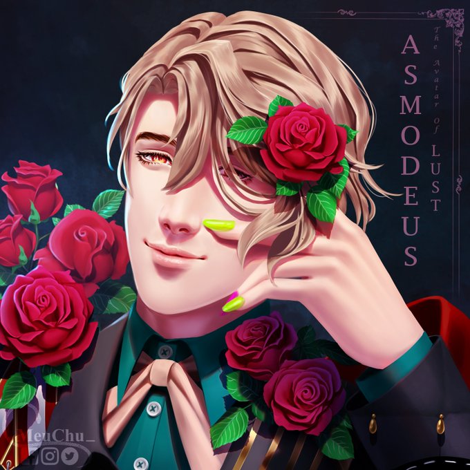 💗Happy Valentine's Day to everyone!💗 🌹Roses for our dearest Asmodeus. It fits him so I just chose it.🌹 Had another thing prepared for this special day but couldn't finish it with all the things happening. #obeyme #obeymefanart #ObeymeAsmodeus #おべいみー #obmプラス