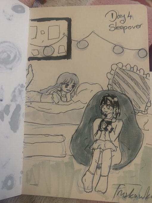 0 1 Day 4 sleepover Day 5 Cyberpunk Day 6 70s Hippie #cutegirltober #inktober2022 22/10/09 17:03