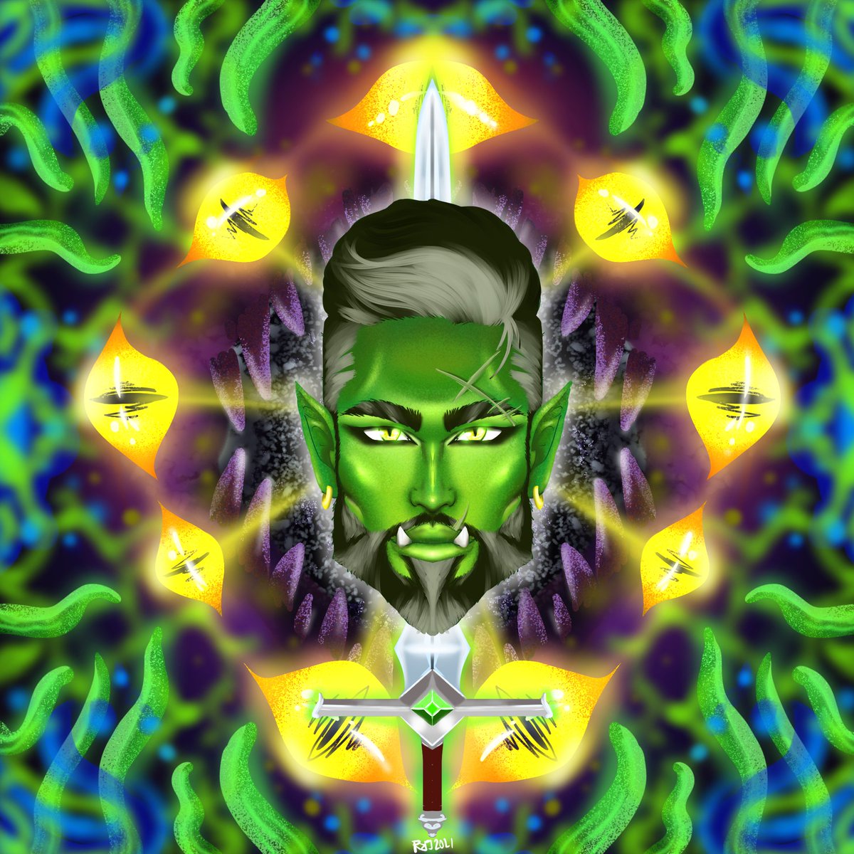 Tha Big'ol Druid, always throwing Dem CaDuceus to"em 💚💜💚💜💚💜💚💜💚💜💚💜 #CriticalRole @CriticalRole #caduceusclay #cleric #Criticalroleart #poc #Latine #Latine #illustration #animation