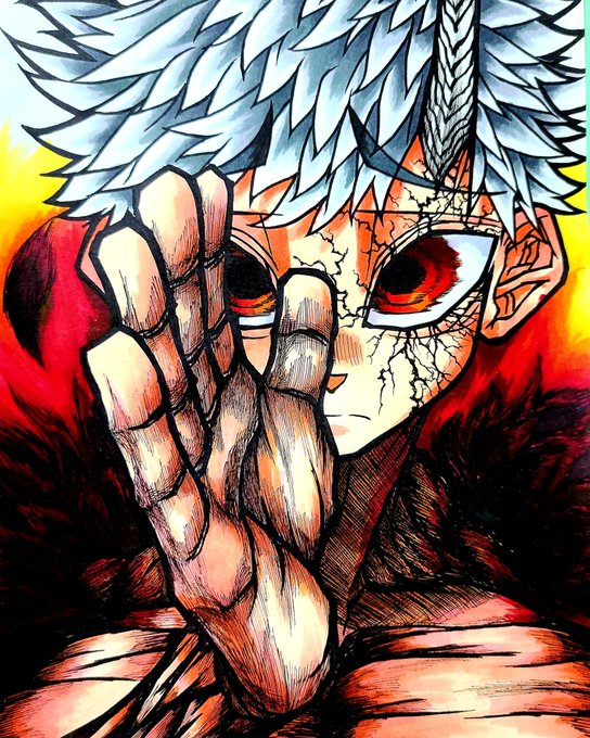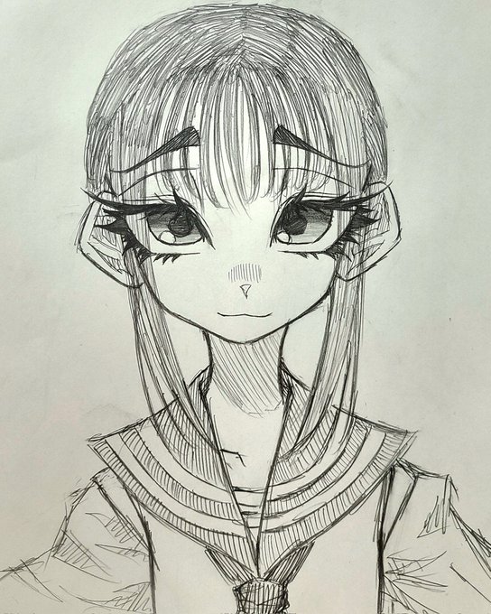 鬼人お団子ヘア! 可愛く描くのって本当に難しい #イラスト #イラスト好きと繋がりたい #アナログイラスト #オリキャライラスト #オリジナル #絵描きさんと繫がりたい #illustration #illust #drawing #draw #artwork #art #上目遣い #鬼 #落書き