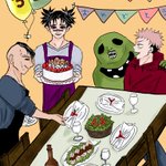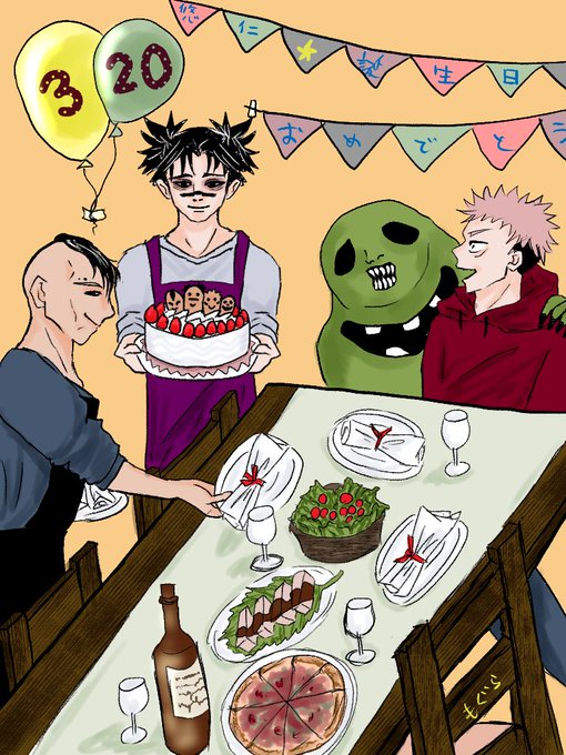 #お兄ちゃんワンドロ 「ゆうじの誕生日」 悠仁ーーー‼️誕生日おめでとう🎉🎈 今日はホームパーティー🎊 時間なくていろいろ雑だし、テーブルとか椅子とか曲がってるネ😅💦 背景も描けるようになりたいな🥺