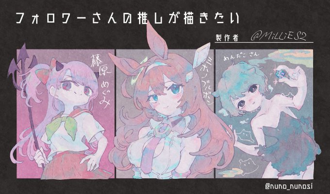 🍁芸術の秋きゃんぺ~ん② #フォロワーさんの推しが描きたい 藤原愛実、ミホノブルボン、めんだこさんです! ありがとうございました🪄💫